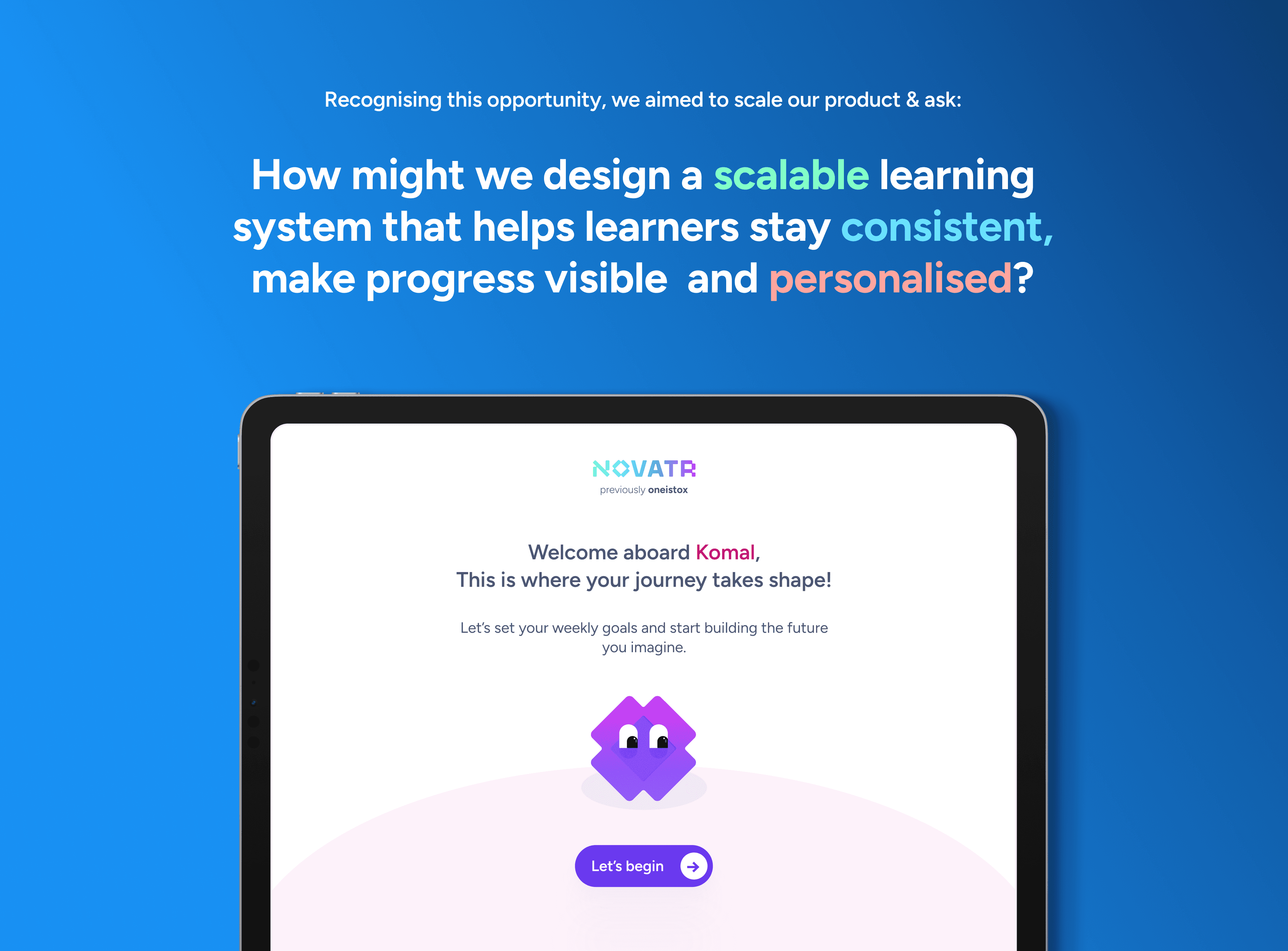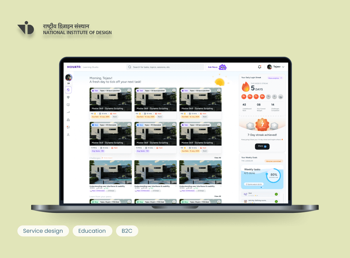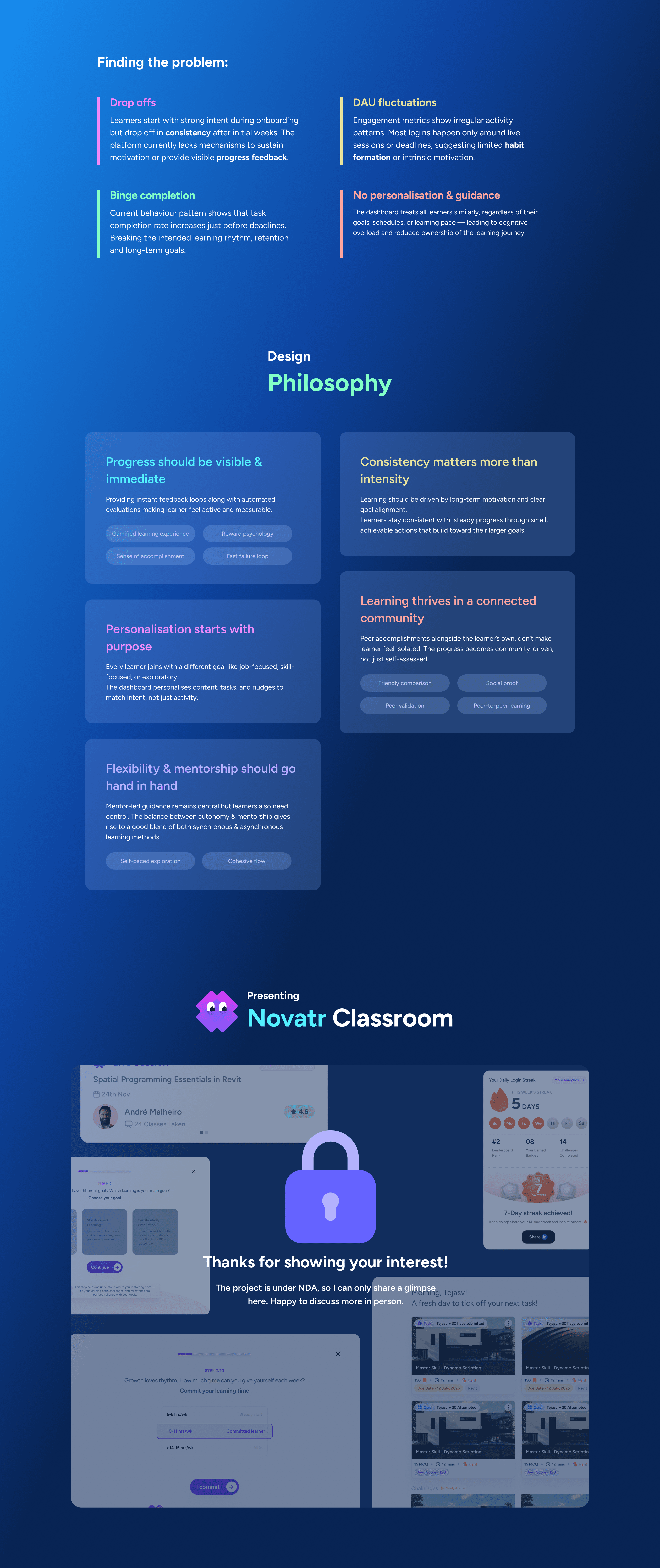 Redesigning digital learning at Novatr — transforming an LMS into a habit-forming, gamified experience that drives consistent learner motivation, engagement, and measurable progress.