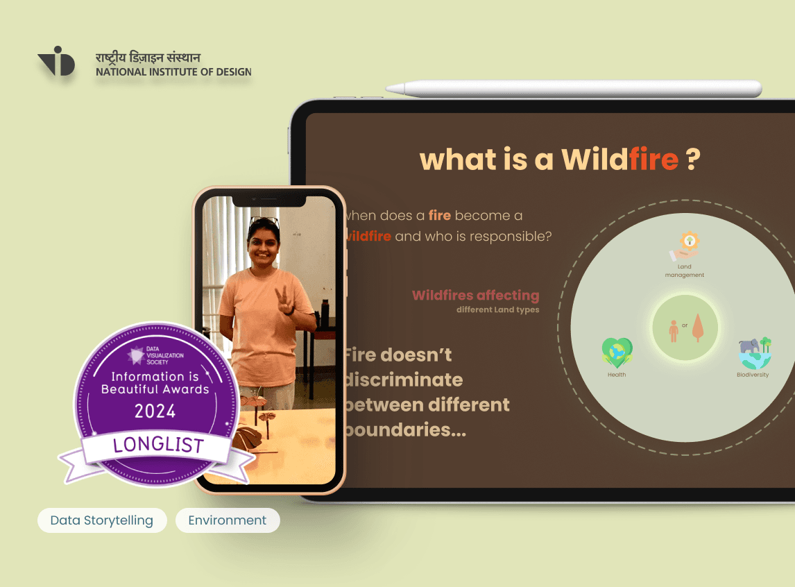A data narrative that challenges the notion of wildfires being confined to forests. By visualizing two decades of data across diverse land types, the project reveals how these fires shape and scar multiple ecosystems beyond what we imagine.